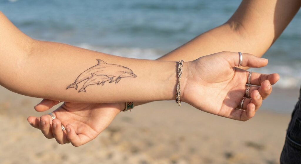 6. Mother and Baby Dolphin Tattoo