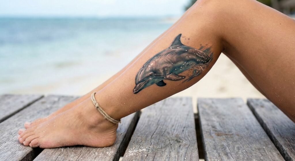 8. Realistic Dolphin Tattoo