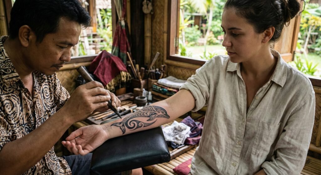 Tribal tattoos draw inspiration from Polynesian, Maori, and Hawaiian cultures, where dolphins are revered as spiritual protectors and symbols of guidance. A tribal dolphin tattoo typically uses bold black lines, geometric shapes, and patterns representing strength, unity, family, and the ocean. This design is ideal for people looking to honor cultural significance or embrace a strong, striking aesthetic with deep meaning.